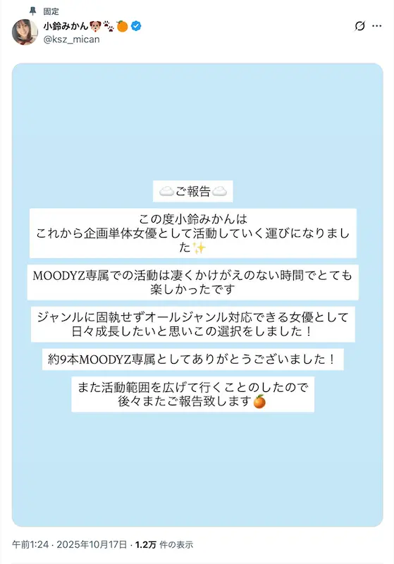 小鈴みかんさん、ムーディーズ専属からキカタン転身